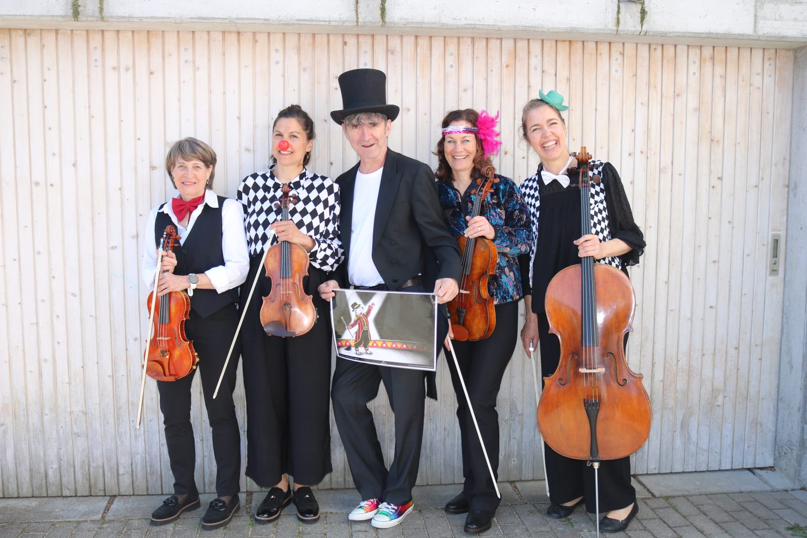 Die Musik unterstreicht die jeweiligen Stimmungen: rassige Walzer, übermütige Polkas und gewichtige Märsche von J.Strauss und E.Elgar, melancholische Klänge con C.Debussy und R.Schumann und fetzige Zirkusmusik des Schweizer Komponisten Patrick Huck werden zu hören sein.